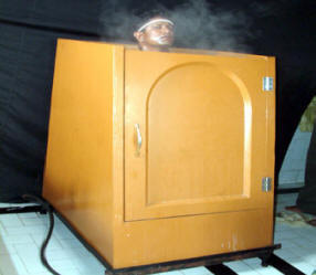 The patient is allowed to stand or sit in a wooden box. Medicated steam is passed in to the box in a moderate and affordable temperature. Body sweats and perspires. The process lasts for 10 to 25 minutes This Particular treatment expels the blemishes and fat from the body.
