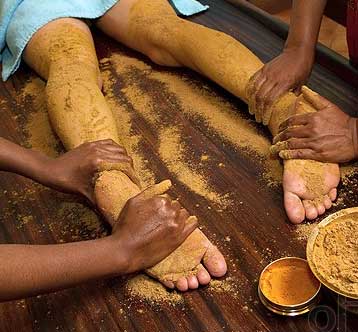 This treatment takes about 40 minutes to one hour . Herbal leaves , Herbal powder, oil or kashaya are well mixed and smeared all over or part of the body. Pain due to busies, oeduna etc can be easily wiped out by this treatment.